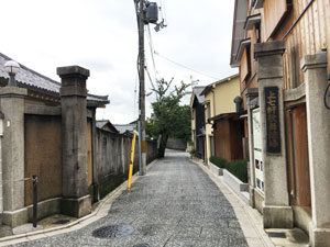 Exit the shrine from the east gate, there is a Itsutsuji-street. Around here is called Kamishichiken.