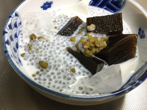 次は本気で、黒糖の寒天を作ってバジルシードとココナッツミルクと合わせて。